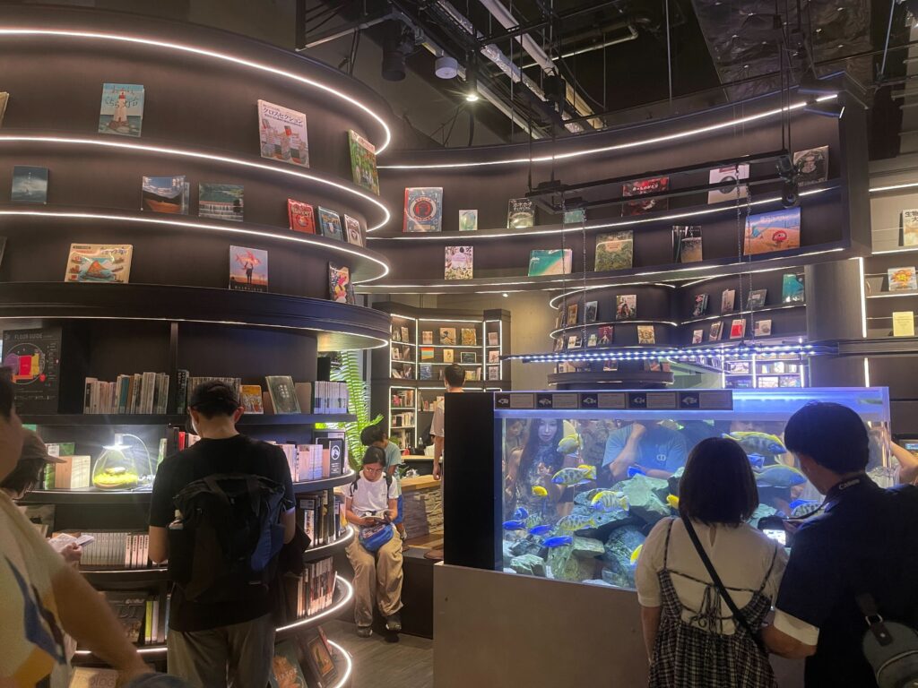 さらに、2024年には新エリア a to a LAB(アトアラボ)がオープンしました。この世界観も凄くて、圧倒的でした。周囲は本で埋め尽くされており、まるで研究室のような空間です。そこに、アクアリウム×アートを見事に落とし込んで表現しています。