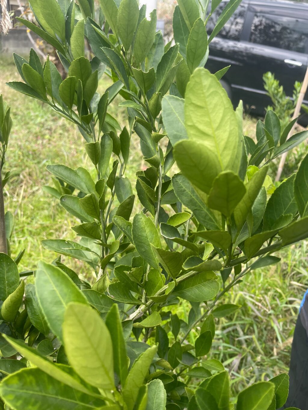 左はみかんの葉です。葉をちぎって、指でこするとみかんの香りが楽しめます。