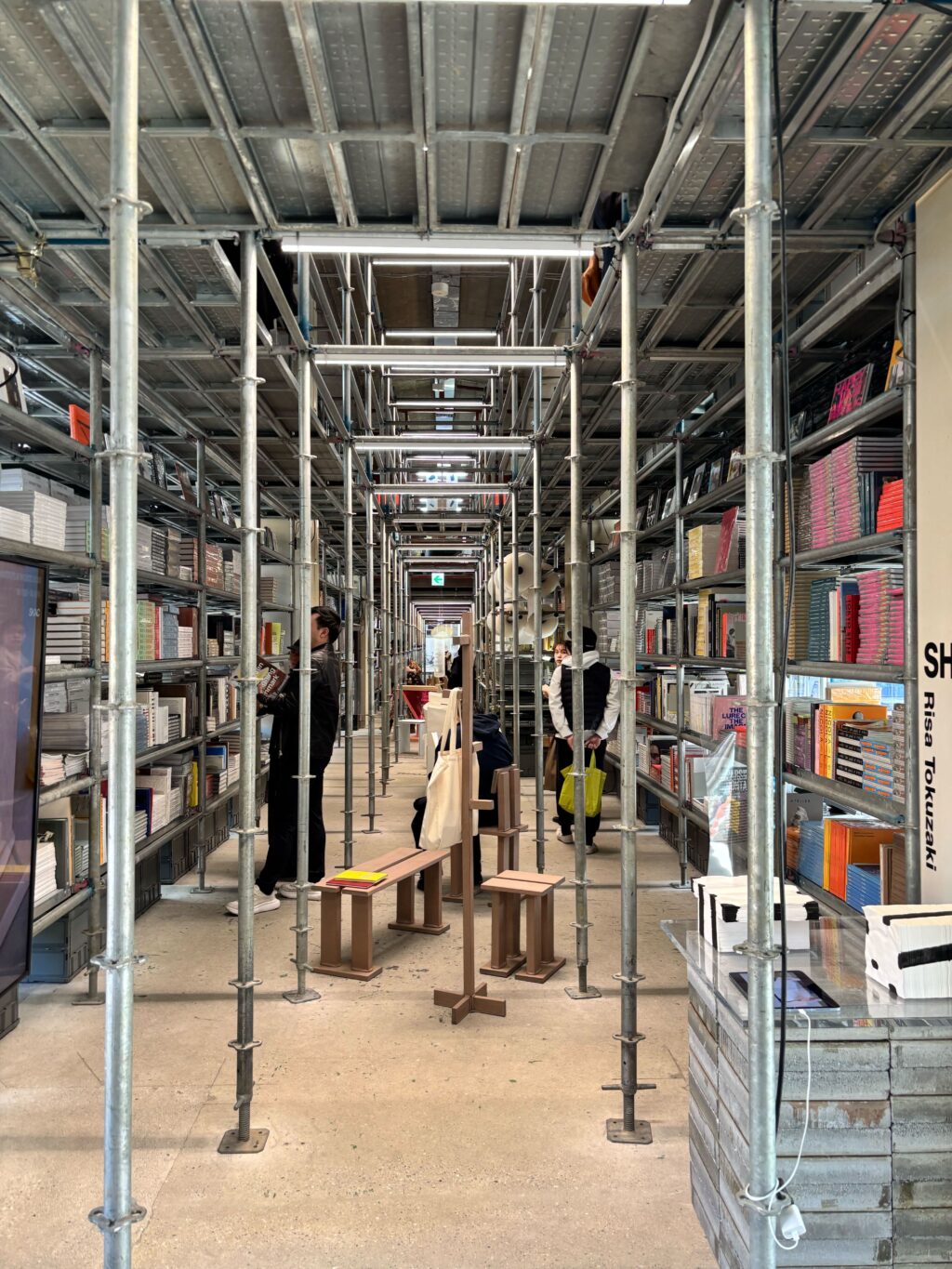 世界各国のデザイナーの本やレコードなどを短観足場だけで構成されたグリッドに収容しています。
