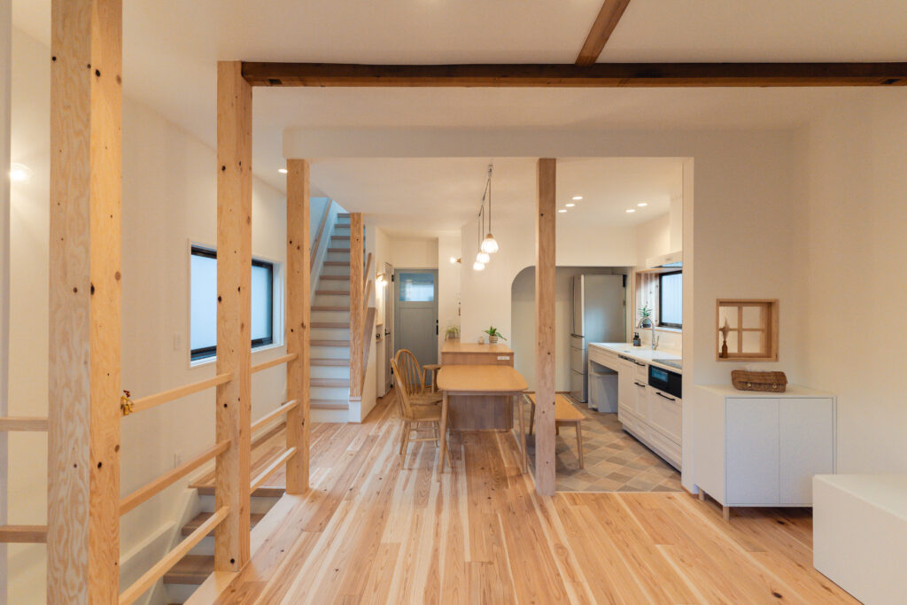 明るいLDKとなり、無垢の床の肌触りも気持ちのいい空間となりました。