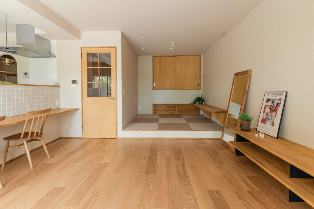 畳スペースに作った収納や、下部が隣の部屋と繋がるガラリのデザインもイメージ通り。和の要素とモダンな使い勝手が心地よく調和した空間になりました。
