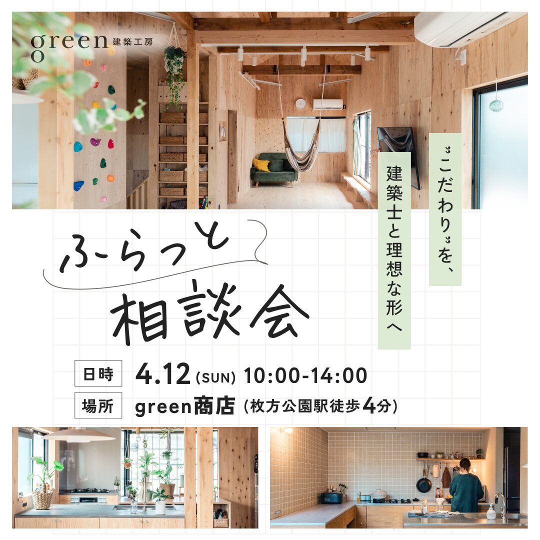 ※4/12は五六市開催中ですが、green建築工房にて相談会がある旨を警備の方にお伝えいただくと車での通行が可能です。