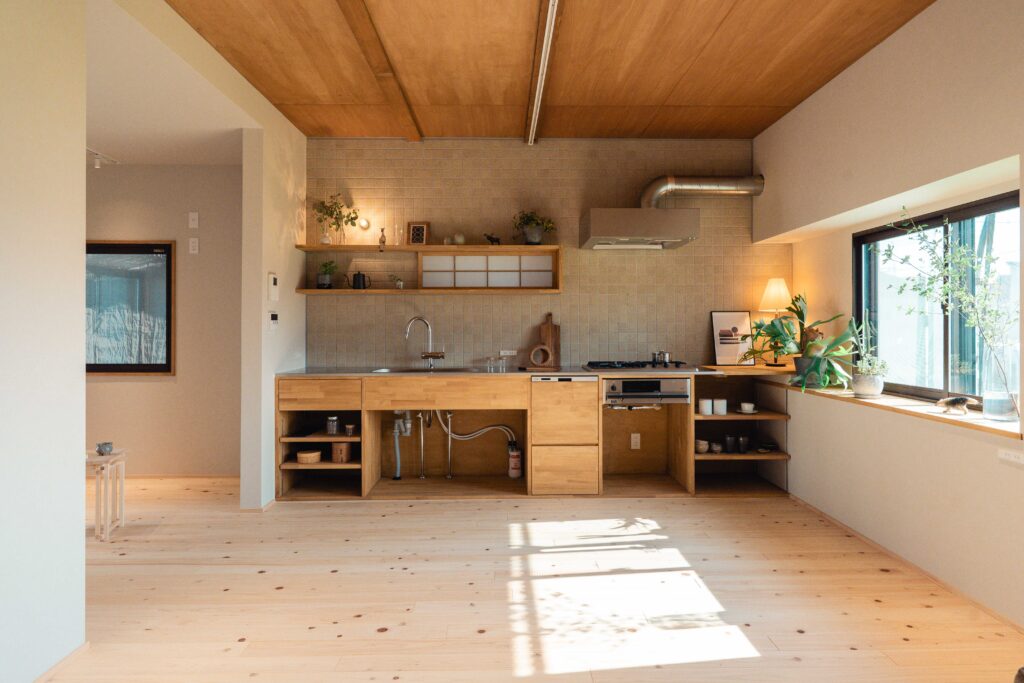 1階は間取りを大きく見直し、「子どもたちに、できるだけ自然体で育ってほしい」そんなご家族の願いが、素材選びや空間のつながりに丁寧に表れています。