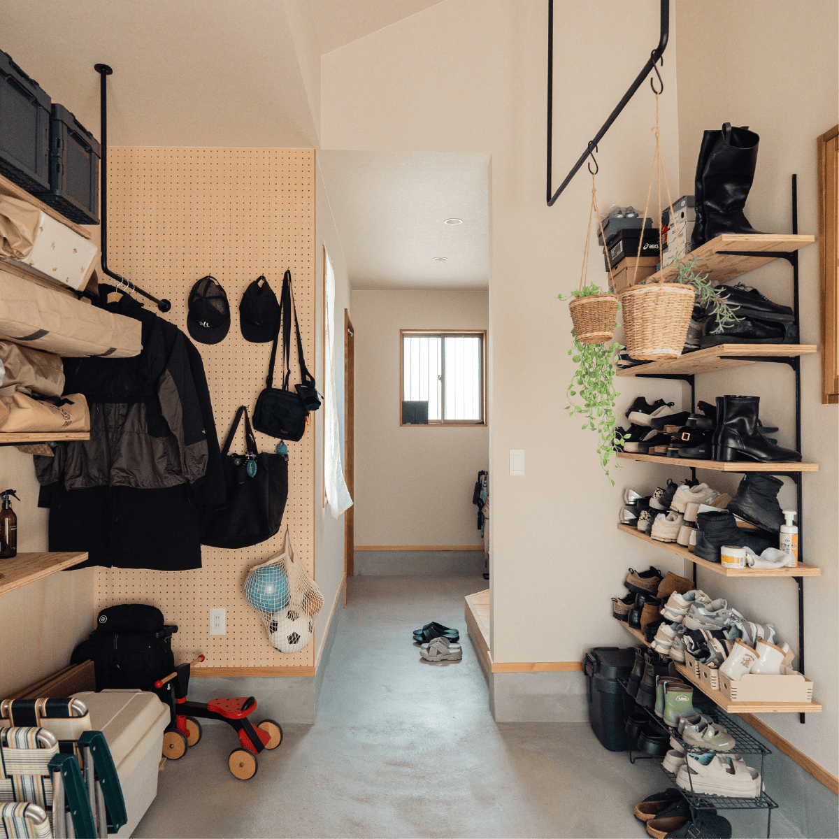 収納はあえて最小限に抑えつつ、家族みんなで使えるファミリークローゼットを設け、すっきりとした暮らしを実現しました。